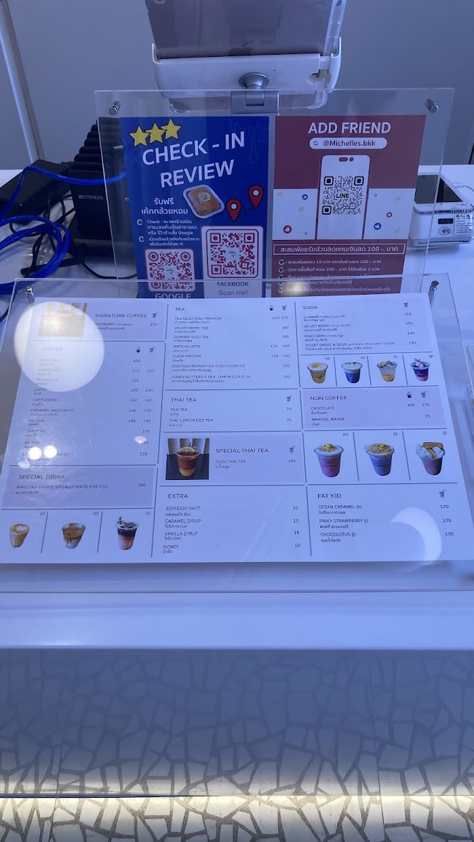 Introducing "Michelle’s," a charming coffee shop located on Suk Sawat Rd in Rat Burana, Thailand. With its inviting rose gold decor and stylish three-story layout, Michelle's provides a cozy atmosphere perfect for enjoying a delightful beverage or pastry. The menu boasts an impressive array of drinks, including aromatic coffees with perfectly roasted beans and enticing non-coffee options like the rich Matcha Latte and refreshing Yuzu Thai Tea.